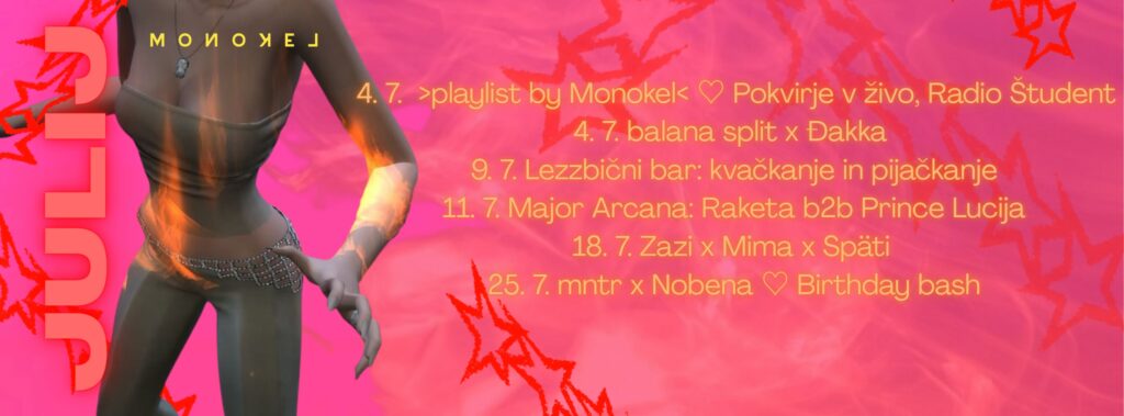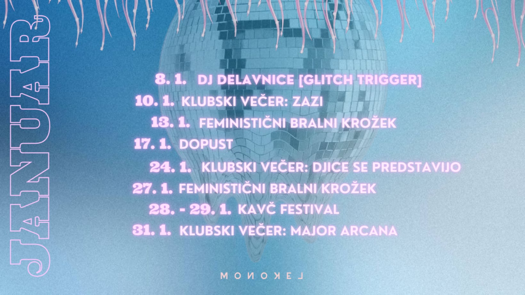 Club Monokel is a ŠKUC-LL nightclub venue located in Metelkova City. The club’s history goes back to the beginnings of the Metelkova Autonomous Cultural Zone. Monokel’s purpose is to enable gathering, socializing, programme development, and promotion of lesbian and FLINT cultures and lifestyles.